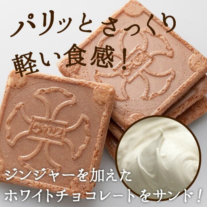 ホワイトチョコレートをサンド。パリッと軽い歯ごたえも楽しいお菓子です。